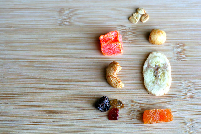 1 1/2 c. dried tropical fruit mix (large pieces/cut small)
