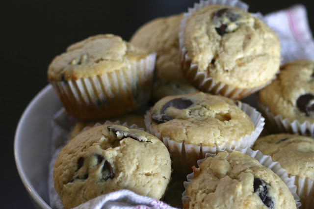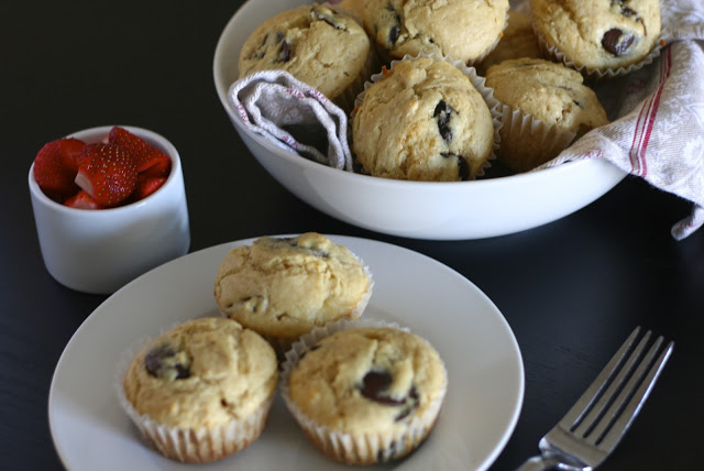 The weekend is officially here. It’s time to kick back, relax and celebrate by baking up a fresh batch of breakfast-worthy treats. This recipe is now a favorite at our place, never failing to make the perfect muffin–light, fluffy and oozing with rich chocolate chips. Pair a few muffins with a serving of fruit, and the weekend will be yours for the taking.