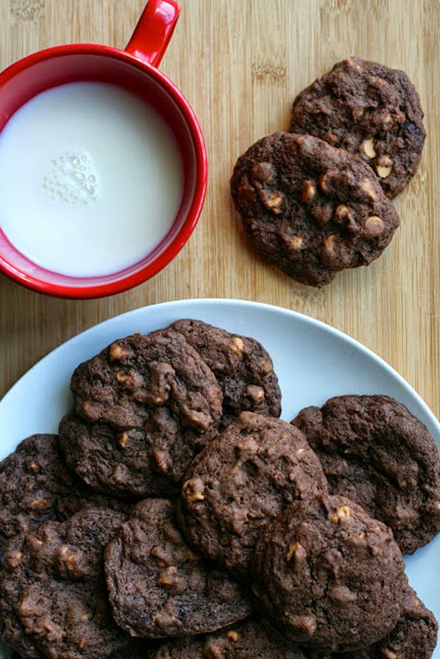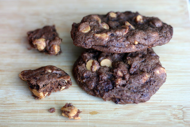 I found the perfect chocolate cookie recipe. It’s rich and decadent, yet still fluffy and sweet. Instead of opting for the classic chocolate and chocolate combination, I threw in our go-to ingredient . . . peanut butter. With peanut butter chips, this recipe is unstoppable. Please be sure to enjoy responsibly. These cookies are border line addictive.