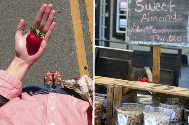 This past weekend I made a quick trip to the Bay Area for a reunion with my best girlfriends from college. As we played catch up, the girls showed me all there is to know about picking up this season’s freshest ingredients–bright berries, perfectly toasted bread, homemade apple juice and lots of delicious kettle corn.