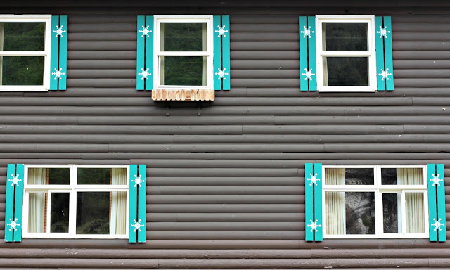 We took a scenic drive up the canyon over the weekend. Our destination was Alta, a place we both like. The mountains are beautiful this time of year. Snow is melting from the peaks, and the trees are filled with bright green leaves. Alta is known for it’s old school charm–the lodges, shops and restaurants lining Little Cottonwood Canyon are quaint and rustic. Aren’t those shutters charming? It’s the quintessential spot for anyone who enjoys the art of skiing.