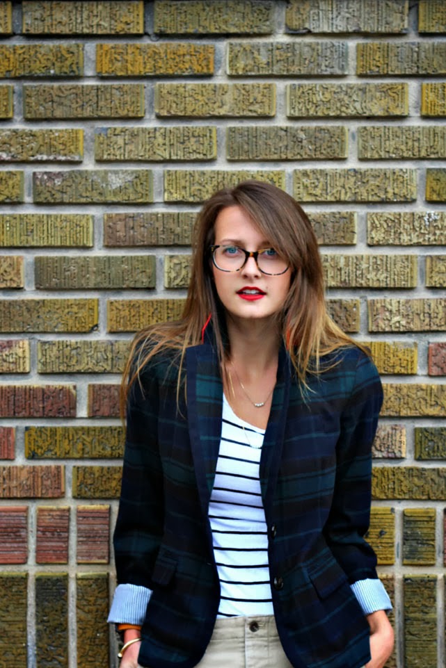 I”m digging that tartan is in for fall, as here in Scotland you can find it growing on trees. Love your Blackwatch tartan blazer, and love that the sleeves are lined in a striped shirting material. Well played.