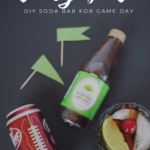Build-your-own bars, like our DIY Dr. Pepper drink station, are a fun way to get your guests in on the action. I like to offer a few different options, like Diet Dr Pepper + regular Dr Pepper on it’s own or the soda served with mix-ins. I purchased our football themed Dr Pepper 12 packs from Dollar General. You can find them on the soft drink aisle in a festive football display.