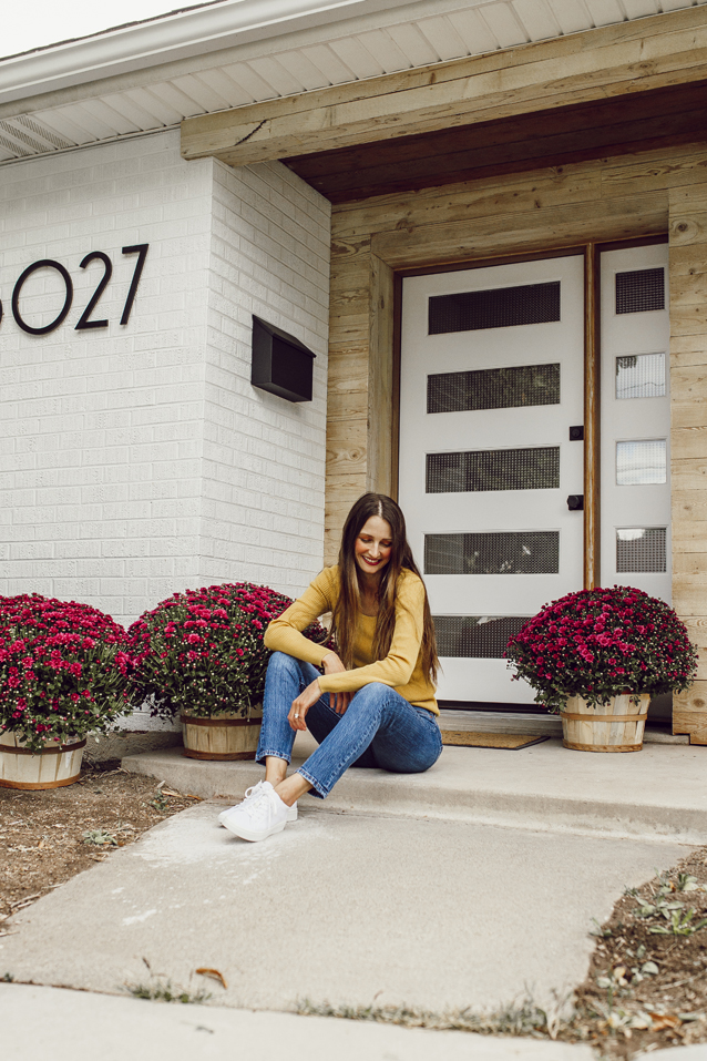 Love the door and the big and bold house numbers! You look so pretty and joyful. Hope the rest of the project goes well! 🙂