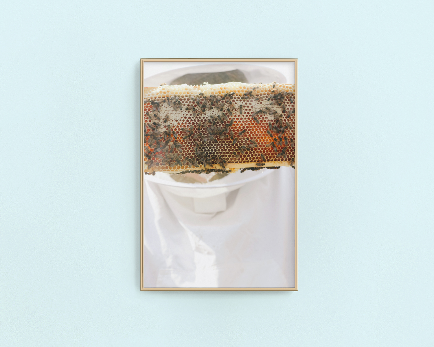This beautiful downloadable image of an urban beekeeper was shot at a rooftop garden in Camden Town, London, while a friend tended his honey bees. It’d be a colorful addition to any space. You can easily print at home, a local print shop or send the file to an online printing specialist.