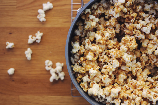 Caramel corn is a (very) favorite fall treat . . . 1 c. butter 2 c. packed brown sugar 1 tsp. salt 1/2 c. light corn syrup 1 tsp. baking soda 6 c. popped mushroom kernel popcorn 2 c. popped…